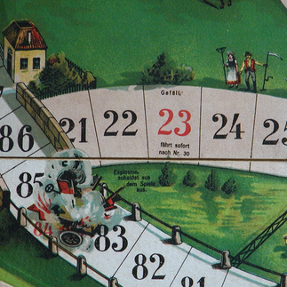 Auch hier können die Mitspieler kurz vor Ziel aus dem Spiel ausscheiden, nämlich dann, wenn das Auto explodiert.