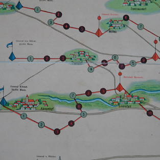 Auf unterschiedlichen Wegen, welche die Feldherren u.a. wie Blücher, Prinz Eugen, Bülow oder Schwarzenberg sich in Richtung Leipzig bewegen, wird die Schlacht bei Leipzig im weitesten Sinne als Brettspiel nachempfunden.