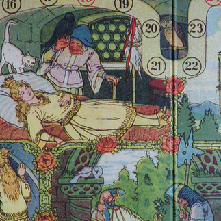 Die Geschichte von Dornröschen wird in diesem Brettspiel in der Form eines Ziellaufspiels nachgespielt.
