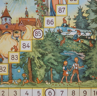 Dazu kommen auf dem Spielfeld selbst die Verse, die textlich die Bildausschnitte der Märchen ergänzen.