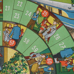 Typisches Reisespiel, mit aussetzen, doppelt würfeln oder wieder von vorne beginnen.