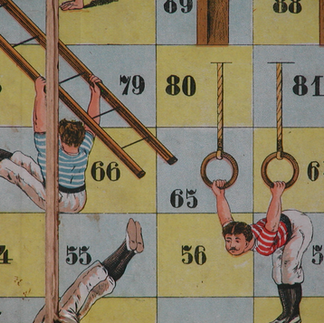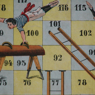 In diesem Leiterspiel werden die damals zur Verfügung stehenden Sportgeräte in ihrer Eigenschaft bildlich vorgestellt.