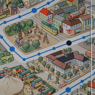 Bernd Rösel ein bekannter Illustrator seiner Zeit, hat auch zahlreiche Verkehrslehrtafeln entworfen.