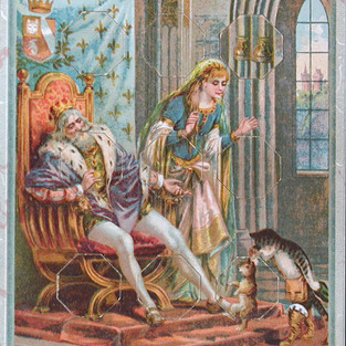 Rotkäppchen, Aschenputtel und Der gestiefelte Kater sind jeweils auf zwei Bildtafeln zu sehen.