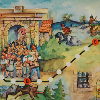 Mitten im Märchenland fliest ein großer Fluss, wo die Mitspieler zwei Mal über eine Brücke gehen müssen, um weitere Märchen zu erkunden.