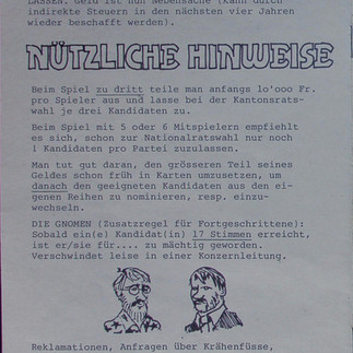 Auch in der Schweiz wird gewählt und der Verlag Fata Morgana hat hier ein Spiel herausgebracht, welches in drei Wahlgängen gespielt wird.